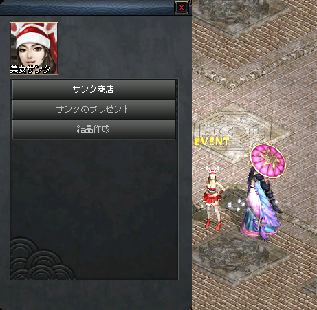 期間中、洛陽城中央付近に専用NPCが出現します。 ![]() ![]() 各コマンドでサンタコインを 交換することができます。