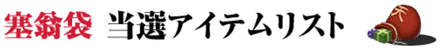 | 2 |  | 1 | 重量:5割減 命中:±30 修練付与値:5 属性:ランダム